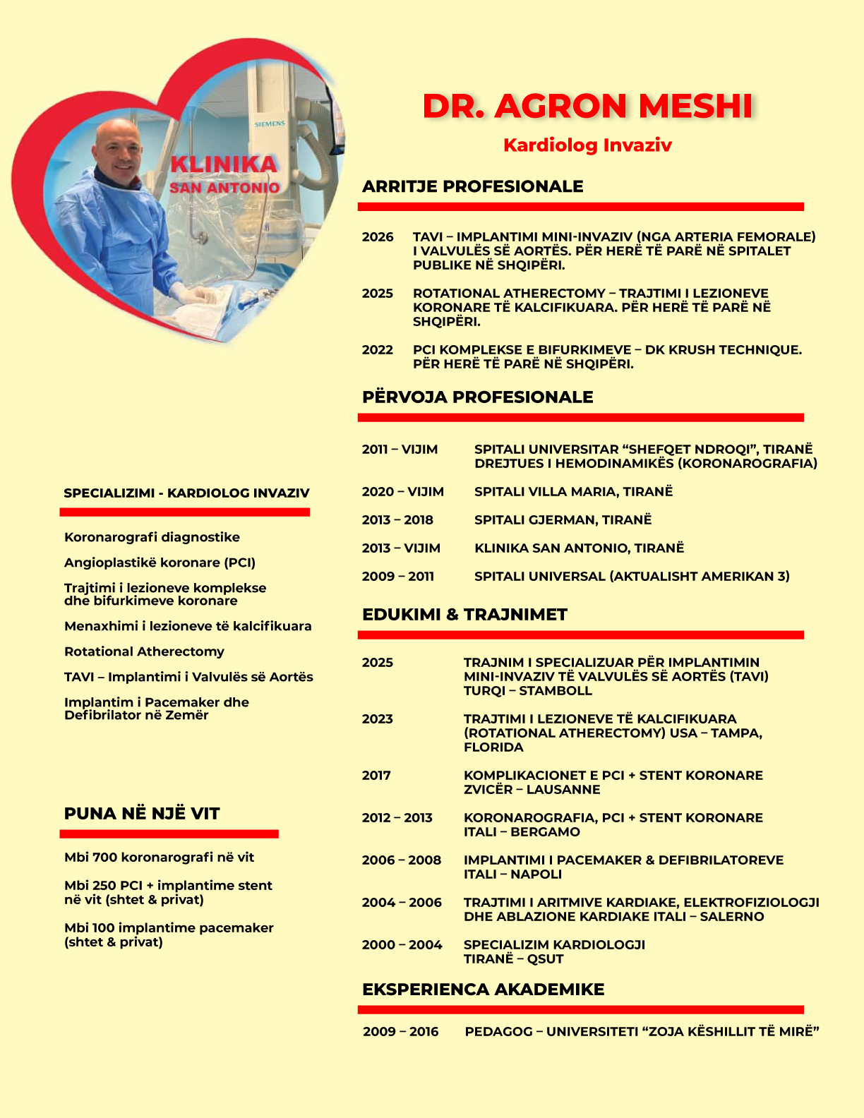 Rotational Atherectomy (RA) është një procedurë e avancuar intervenuese kardiologjike që përdoret për trajtimin e lezioneve shumë të kalcifikuara të arterieve koronare, kur metodat standarde (balonë/stent) nuk funksionojnë. Rotational atherectomy përdor një majë rrotulluese (burr) të veshur me diamant, e cila rrotullohet me shpejtësi shumë të lartë, për të gërryer kalcifikimet e forta, zbutur lezionin, përgatitur arterien për balonë dhe stent. Kjo ben te mundur arritjen e suksesit ne nje procedure te veshtire per implantimin e stentit.